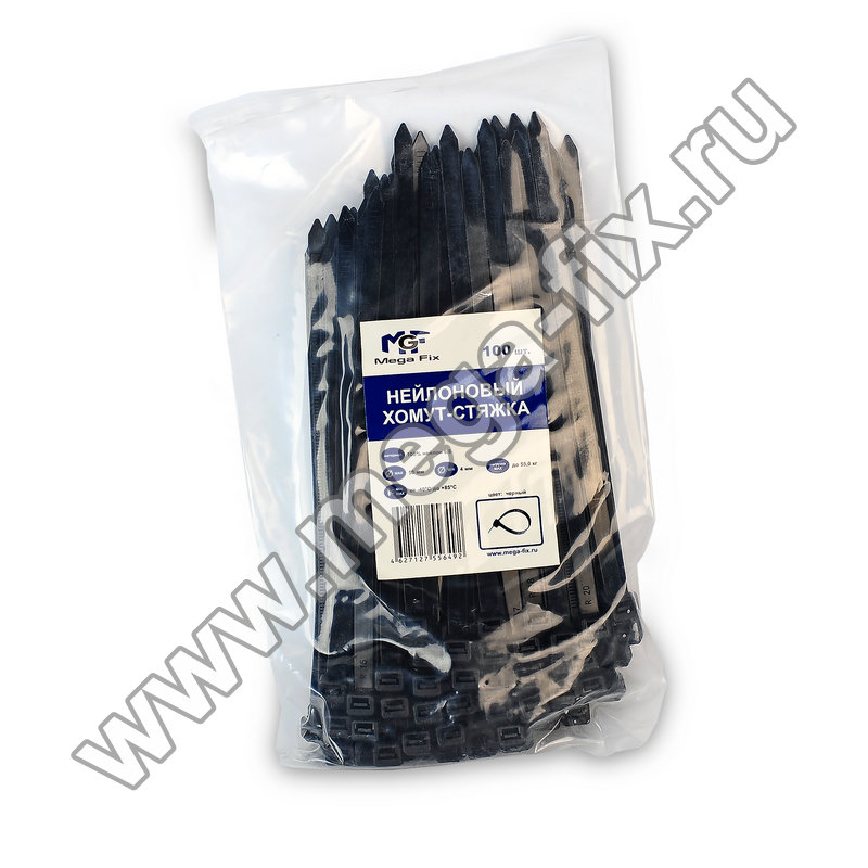 Хомут нейлоновый MGF 3,6х200 мм черного цвета (100 шт./ уп.) mega-fix